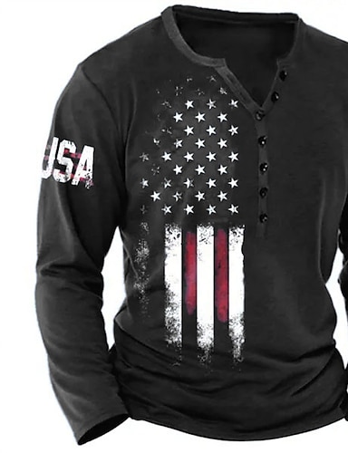 Homme Chemise Henley Chemise cool Chemise à Manches Longues manche longue Henley Printemps & Automne Impressions Graphiques Drapeau national Designer Occasionnel Confortable Imprimé Boutonné Rue
