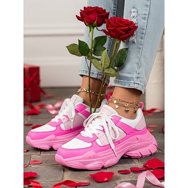 Baskets compensées pastel pour femmes avec semelle plateforme rose - color block, idéales pour un look décontracté, la mode urbaine et les sorties quotidiennes.