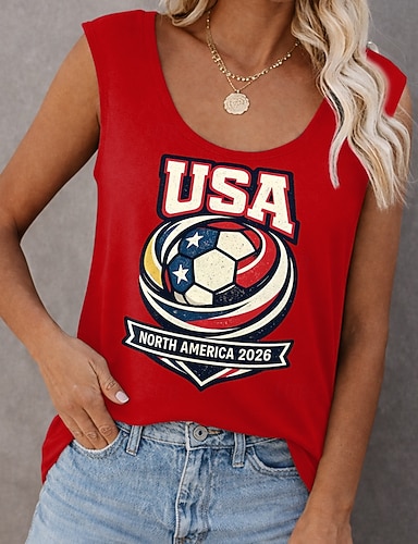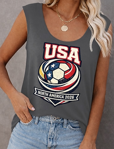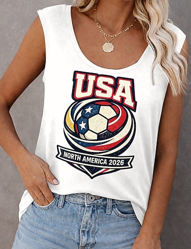 T-shirt femme Coupe du monde de football 2026, imprimé graphique, équipe de foot, style vintage, élégant, classique, manches courtes, col rond, coupe droite, décontracté, blanc, été, printemps
