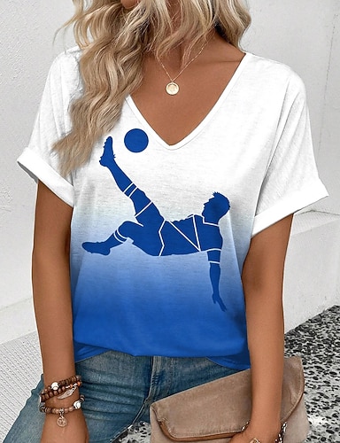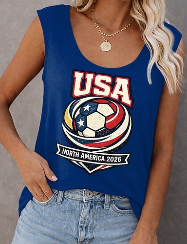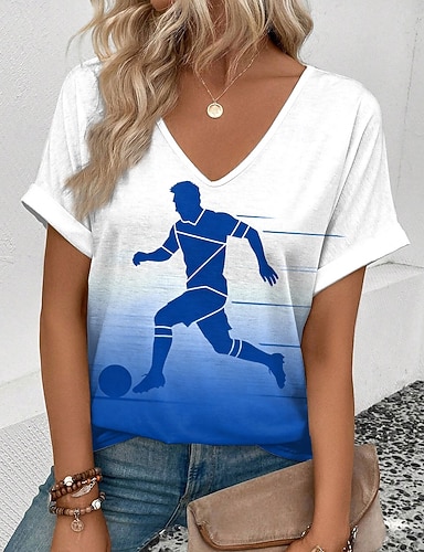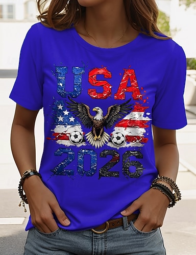 T-shirt femme Coupe du monde de football 2026, imprimé graphique élégant, classique et décontracté, manches courtes, col rond, coupe classique, bleu marine, été, printemps