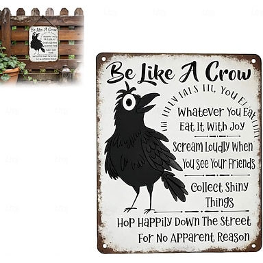 Plaque murale vintage en métal « Sois comme un corbeau », décoration murale humoristique et positive, motif corbeau avec citation amusante, style rustique pour la maison, le bureau, la cuisine ou le