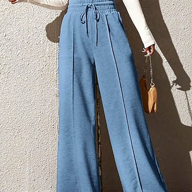Femmes Pantalon à pattes d'éléphant Slacks Pantalons Streetwear Occasionnel Longueur complète Naturel Uni Conception à cordon élastique Extérieur Confortable Vacances Sortir Bleu ciel clair Vert