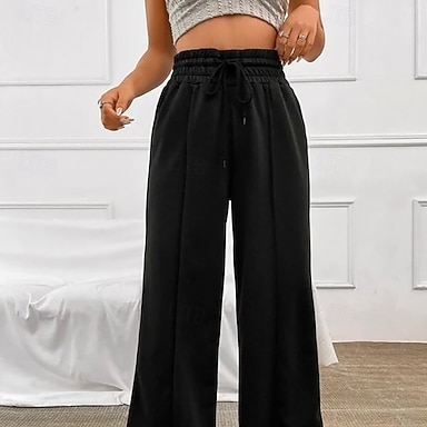 Femmes Culottes Jambe Large Joggings Chinos Vacances Streetwear Occasionnel Longueur complète Taille moyenne Uni Avec Poches Conception à cordon élastique Confortable Micro-Élastique Quotidien