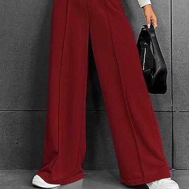 Femmes Jambe large Slacks Streetwear Occasionnel Longueur complète Naturel Uni Avec Poches Conception à cordon élastique Confortable Rue Tenue quotidienne Week-end Rouge bordeaux Abricot Jacinthe Noir