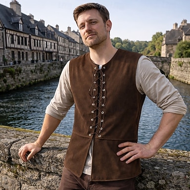Médiéval Renaissance 17ème siècle Veste Gilet en daim Pirate Viking Barbare Cordon de serrage Déguisement Homme Viking Pirate Halloween Carnaval Mascarade Performance LARP Foire de la Renaissance