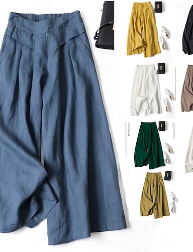 Femmes Pantalons Pantalons Amples Pantalon décontracté Vacances ancien Mode Longueur complète Taille haute Uni Avec Poches Taille Élastique in in france they say Pontalon wide leg Confort Léger Doux