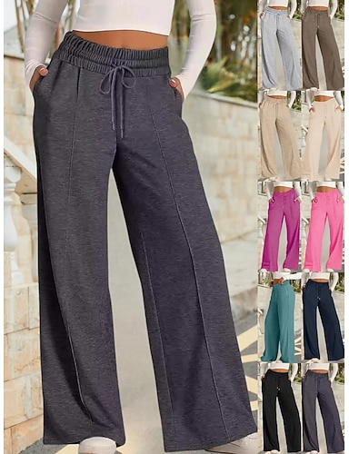 Femmes Joggings Vacances ancien Style Ethnique Longueur complète Taille haute Couleur Unie Uni Cordon de serrage Élastique Quotidien Maison Extérieur Gris clair Gris foncé Marron foncé Rouge foncé