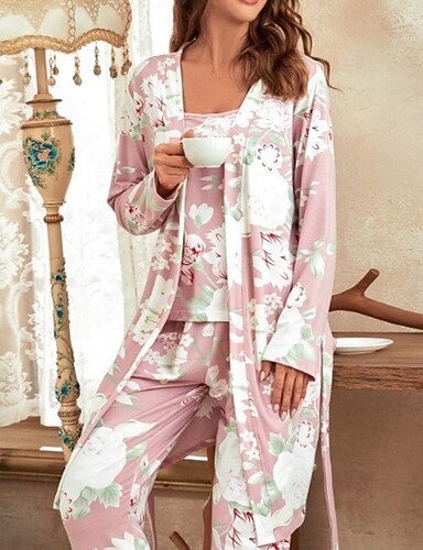 Femmes Ensemble Pyjama Sexy Occasionnel Confort Fleuri Haut de robe Robes Maison Quotidien manche longue Bretelles Noir Champagne Vert Claire Rose Claire Vert Été Printemps Automne Coupe régulière