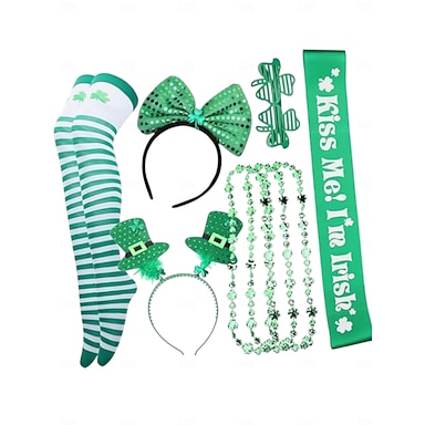 Ensemble d'accessoires verts pour la Saint-Patrick (femme) : bandeau « Kiss Me I'm Irish », collants, collier &plus pour les fêtes