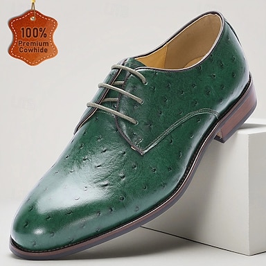 Chaussures Oxford pour hommes en cuir véritable vert à motif d'autruche avec fermeture à lacets, chaussures habillées élégantes faites à la main pour événements formels et occasions professionnelles