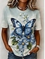 Femmes T-shirt Imprimé Graphique Animal Libellule ancien Élégant Classique Manche Courte Col en V Hauts Réguliers Quotidien Sortir Week-end Bleu Noir Rouge Violet Vert Été Printemps