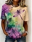 Femmes T-shirt Imprimé Fleuri Graphique Libellule Bohème Hawaïen Élégant Manche Courte Col ras du cou Hauts Réguliers Occasionnel Quotidien Bleu Jaune Rose Claire Violet Vert Été Printemps