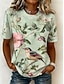 Femmes T-shirt Imprimé Fleuri Graphique Libellule Élégant Classique Occasionnel Manche Courte Col en V Hauts Longs Quotidien Blanche Rose Claire Violet Vert Été Printemps