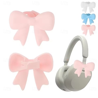 Lot de 2 accessoires pour écouteurs en silicone avec nœud papillon : décorations mignonnes pour écouteurs, clips de fixation pour écouteurs, accessoires de fixation pour femmes