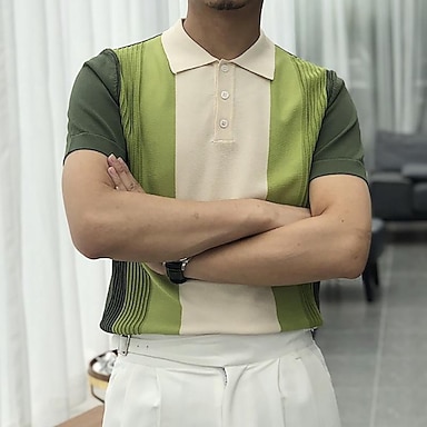 Homme Pull Chandail Pull Tricoter Tricoté Bloc de couleur Col de Chemise à la mode Style vintage Usage quotidien Vêtement Tenue Hiver Eté Vert M L XL