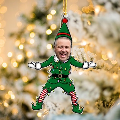 Décorations de Noël photo personnalisées, famille d'elfes drôles, visage personnalisé, ornements d'arbre de Noël, décoration de Noël, pendentif suspendu, cadeaux