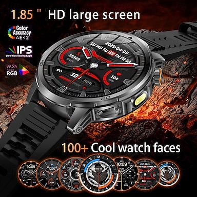 Montre connectée pour homme avec double voyant de détresse SOS et mode lampe de poche LED, batterie 1 000 mAh, suivi GPS, écran de 1,85 pouces, montre connectée de sport en plein air, 100 modes