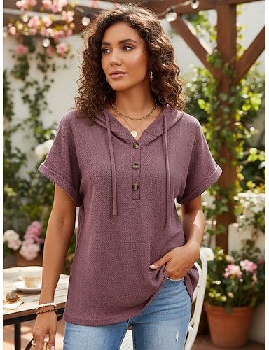 Femmes Hauts d'été Couleur Unie Élégant ancien Mignon Manche Courte À capuche Hauts Réguliers Quotidien Bleu Noir Rose Claire Violet Beige Été Printemps Automne