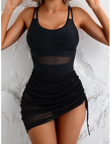 Femmes Maillots de Bain Vêtement couvrant Robe de Bain Jupe Maillot de bain Découpé Vacances Tenues de plage Couleur Unie Sans manches Maillots de bain