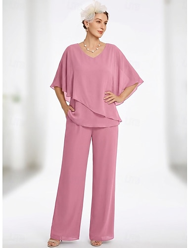 Femmes Chemisier Ensembles de Pantalons Pantalons à Jambes Larges Manche 3/4 Col en V Uni A Volants Mode Streetwear Quotidien Occasionnel Quotidien robe demoiselle d honneur Rose Claire Violet Kaki
