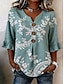 Femmes Chemise Fleuri Graphique ancien Élégant Col en V Hauts Longs Occasionnel Quotidien Fête Bleu Vert Kaki Bleu clair Été Printemps