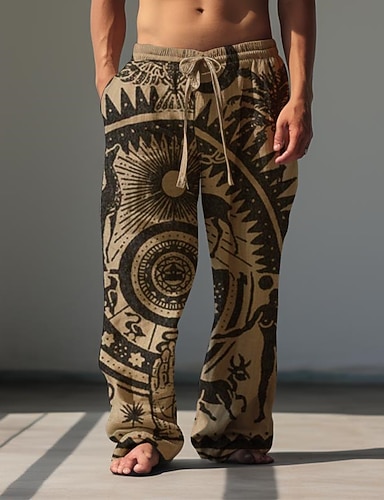 Homme Formes Géométriques Impressions Graphiques Pantalons Pantalon décontracté Pantalon d'été Taille Moyenne ancien Style Ethnique Rétro Vintage Occasionnel Quotidien Fête Cordon de serrage Taille