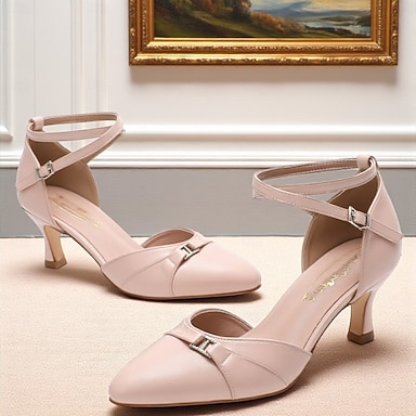 Escarpins roses à bride cheville pour femme – Escarpins élégants à boucle et bout pointu des années 1950 pour mariages, fêtes et tenues de bureau