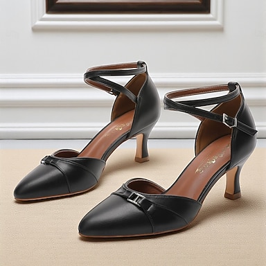 Escarpins noirs à brides pour femmes, avec bride à la cheville, chaussures élégantes à talons hauts pour danseuses latines professionnelles &danse de salon