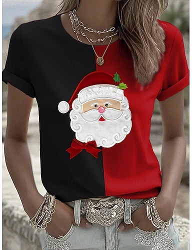 T-Shirt Femme Graphique Claus Vintage Stylé Moderne Manches Courtes Col Rond Tops Réguliers Quotidien Imprimé Noir Rouge Vert Automne Hiver product tag