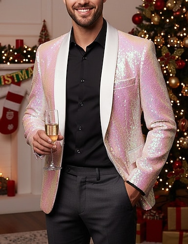 Homme Veste blazer Col châle Mode Fête Paillettes Couleur Unie Blazer Rose Claire Coupe sur mesure à boutonnage simple à un bouton