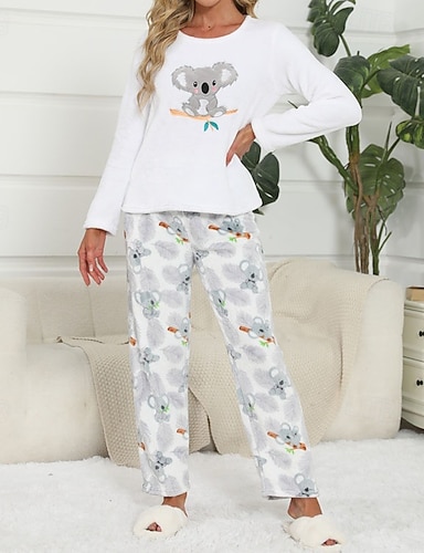 Femmes Loungewear Ensemble Pyjama Mode Occasionnel Dessin animé Panda Potiron Taille Élastique Pantalon Vacances Maison manche longue Col ras du cou Noir Blanche Orange Bleu clair Automne Hiver Coupe