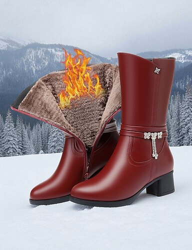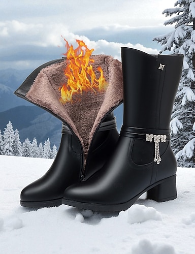 bottes d'hiver noires pour femmes avec doublure en laine pour plus de chaleur, fermeture éclair élégante et détail de charme, talon épais, parfaites pour le temps froid, Noël et les sorties décontractées
