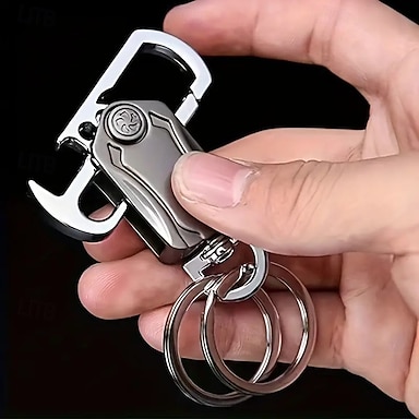 Lot de 2 porte-clés fidget spinner ring 5 en 1 – porte-clés multifonction élégant en alliage de zinc avec cutter, décapsuleur, support de téléphone, clip en métal précieux non revêtu, équipement EDC