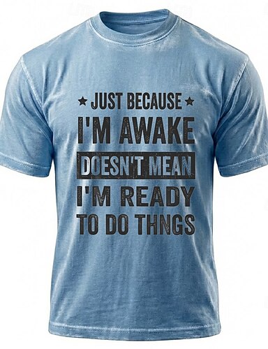T-shirt en coton délavé et vieilli. Ce n'est pas parce que je suis réveillé que je suis prêt à tout. Style rétro. Tailles : S, M, L, XL, XXL, XXXL.