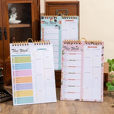 carnet de planification de repas 8,5 x 5,8 pouces, 52 feuilles magnétiques, repas à double hélice &liste de courses, planificateur de menus mural pour la vie quotidienne &plan hebdomadaire