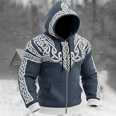 Homme Illusion d'optique Impression 3D Celtics Sweat à capuche Veste Sweatshirt Viking Fantaisie Imprimé sur toute la surface manche longue Fermeture éclair Vêtements de rue Vacances Sortir Bleu Noir