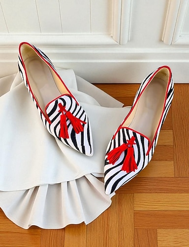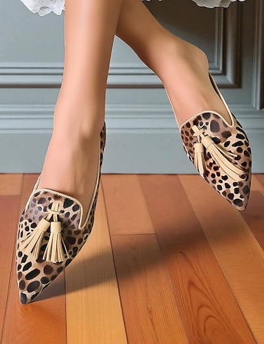 Loafers en cuir synthétique à motif de peau de vache pour femmes – Chaussures plates noires et blanches élégantes pour le décontracté et le bureau