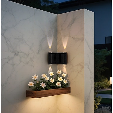 Lot de 2 ou 4 appliques murales solaires d'extérieur, imperméables, à faisceau lumineux vers le haut et vers le bas, pour clôture, maison, arrière-cour, terrasse, porche, décoration de paysage de