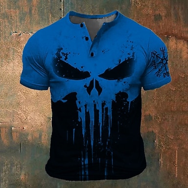 Homme Graphique Crâne Viking T-shirt Chemise Henley Manche Courte Impression 3D Mode Classique Rétro Vintage Sport en Plein Air Fête Sortir Printemps & Été Bleu Blanche Rouge Marron Vert Henley