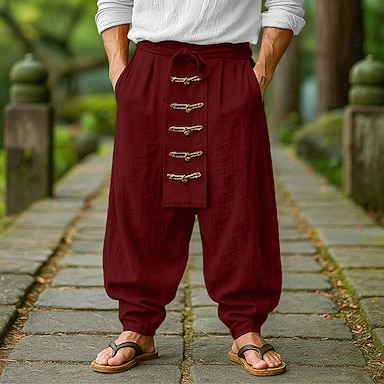 Homme Viking Pantalons Taille Moyenne Occasionnel Extérieur Rue Sortir Printemps & Automne Noir Blanche Vert