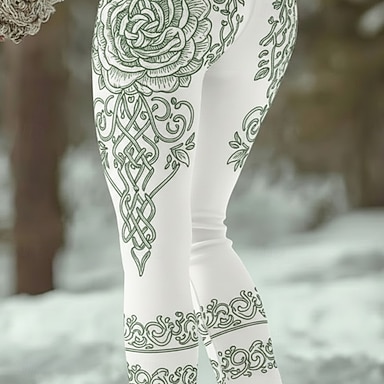 Femmes Viking Leggings Leggings confortables Vacances ancien Style Ethnique Longueur complète Taille haute Graphique Impression Confortable Élastique Occasionnel Quotidien Vacances Vert Printemps