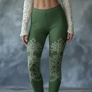 Femmes Viking Leggings Leggings confortables Vacances ancien Style Ethnique Longueur complète Taille haute Arbre Impression Confortable Élastique Occasionnel Quotidien Vacances Violet Vert Printemps