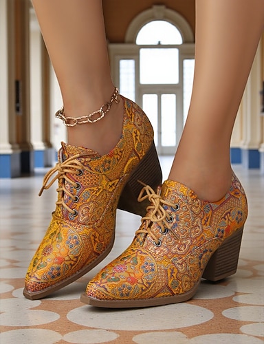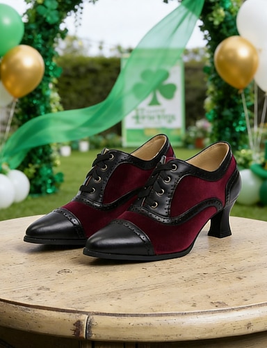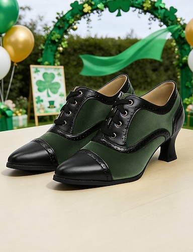 Chaussures Oxford vertes à talons pour femmes, idéales pour la Saint-Patrick - chaussures habillées vintage à lacets et talons carrés pour les fêtes et défilés festifs