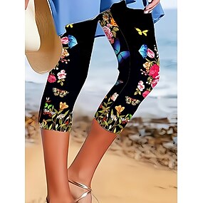 Γυναικεία Κάπρι παντελόνια Κολάν Διακοπές Στυλάτο Ανατομικό Μήκος μοσχάρι Ψηλή Μέση Φλοράλ Γραφική Στάμπα Άνεση Άνετο Ελαστικό Καθημερινά ΕΞΩΤΕΡΙΚΟΥ ΧΩΡΟΥ Αιτιώδης συνάφεια
