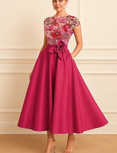 Γραμμή Α Μακρύ Βραδινά φορέματα Τουαλέτα Επίσημο ένδυμα Κομψό Βίντατζ Κοντομάνικο Λαιμόκοψη V Γάμου Επίσημο Τσέπη Σατέν με Άνθινο Εμπριμέ