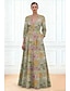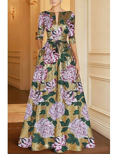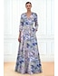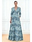 Γραμμή Α Μακρύ Βραδινά φορέματα Τουαλέτα Επίσημο ένδυμα Κομψό Λουλουδάτο 3/4 Μήκος Μανικιού Ζιβάγκο Γάμου Επίσημο Τσέπη Ζακάρ με Τσέπη