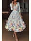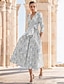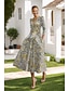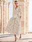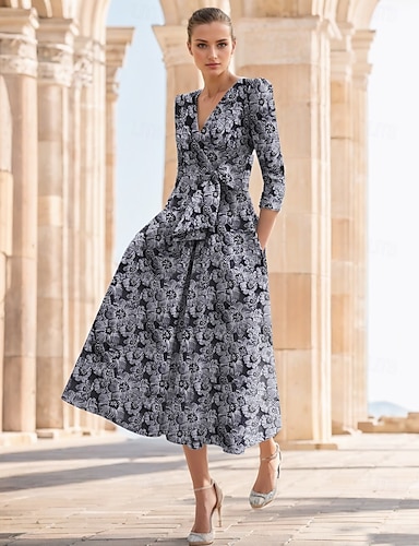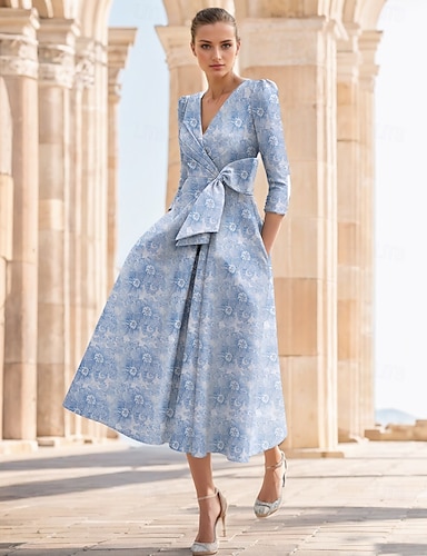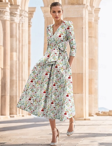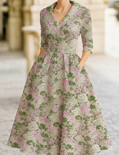 Γραμμή Α Μέχρι τον αστράγαλο Κοκτέιλ Φορέματα Φορέματα για πάρτι Κομψό Βίντατζ Μισό μανίκι Λαιμόκοψη V Γάμου Επίσημο Ζακάρ με Άνθινο Εμπριμέ Φόρεμα Τσέπη