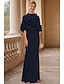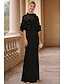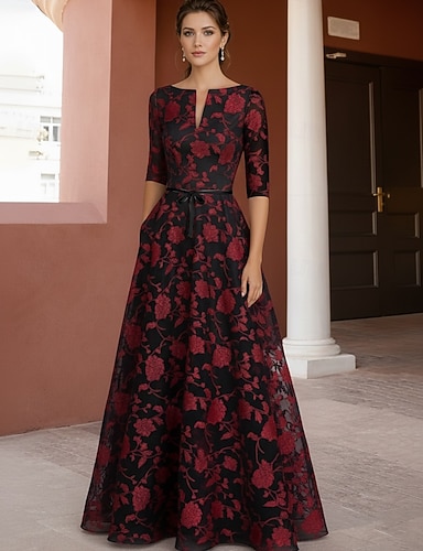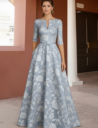 Ίσια Γραμμή Μακρύ Φορέματα χορού Βραδινά φορέματα Τουαλέτα Επίσημο ένδυμα Κομψό Μισό μανίκι Με Κόσμημα Επισκέπτης γάμου Επίσημο Βραδινό Φθινοπωρινή γαμήλια δεξίωση με Πλισέ