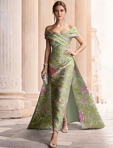 Γραμμή Α Μέχρι τον αστράγαλο Επίσημο ένδυμα Κοκτέιλ Φορέματα Κομψό Κοντομάνικο Χαμόγελο Γάμου Κοκτέιλ Πάρτι Ζακάρ με Πλισέ