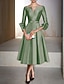 Γραμμή Α Κάτω από το γόνατο Κοκτέιλ Φορέματα Φορέματα για πάρτι Κομψό Βίντατζ Μεγάλο Μέγεθος 3/4 Μήκος Μανικιού Λαιμόκοψη V Επισκέπτης γάμου Σατέν με Πλισέ